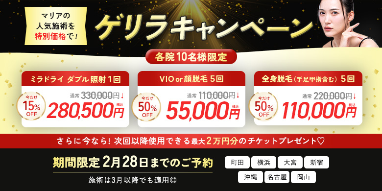 1月31日までにご予約いただいた方は、施術が2月以降でもキャンペーン適用となります。