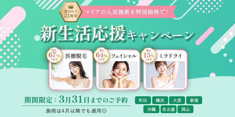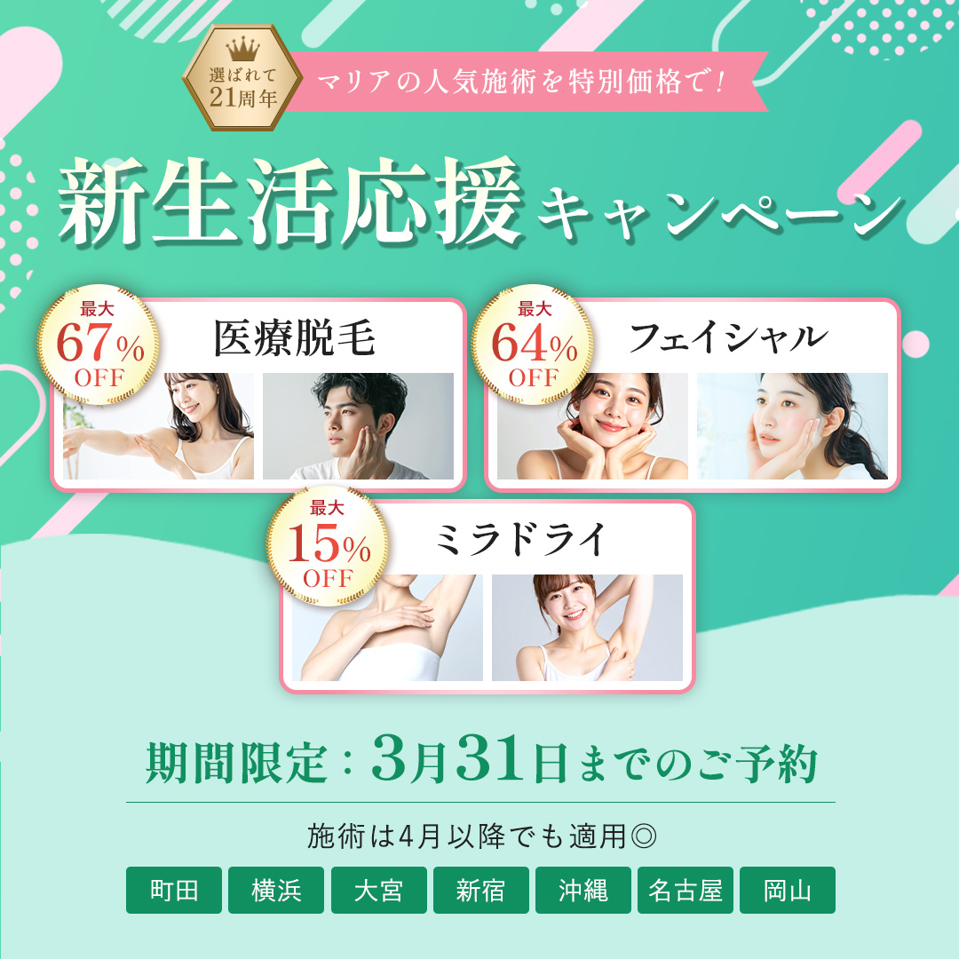 マリアの夏の大感謝祭第1弾とし医療脱毛がお得に受けられるキャンペーンを実施中。